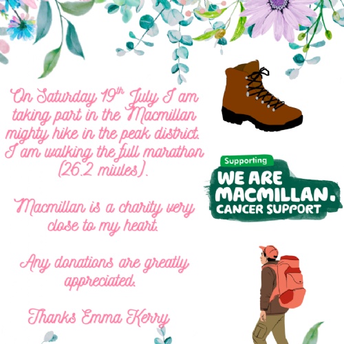 We would be so grateful if you could help us reach our £500 pledge, which can pay for Macmillan Nurse for two days. This could provide people living with cancer and their families essential medical, practical and emotional support.
